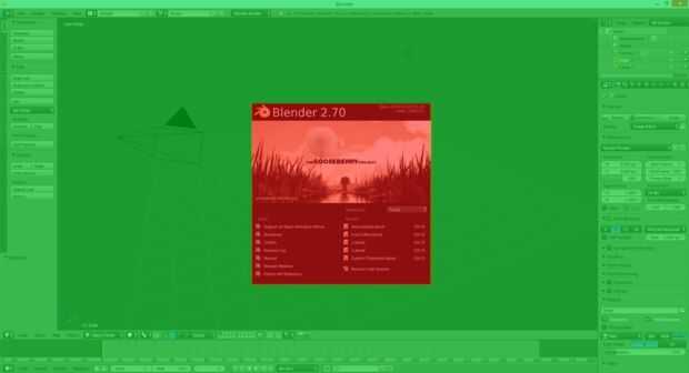 Comience ejecutando blender. Haga clic fuera de la caja de información. Licuadora creará automáticamente una nueva escena cuando se inicia. Debería ver algo como esto.