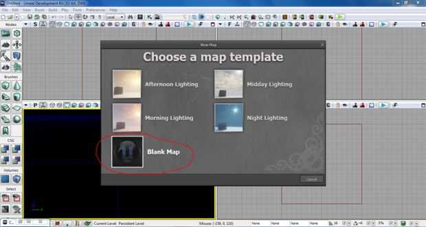 Cuando abres 3 UDK, verás este menú. Para este tutorial, utilizaré mapa en blanco, pero puede utilizar los otros. Los otros tienen luz de aspecto natural y los cielos preconfiguradas en el mapa.
