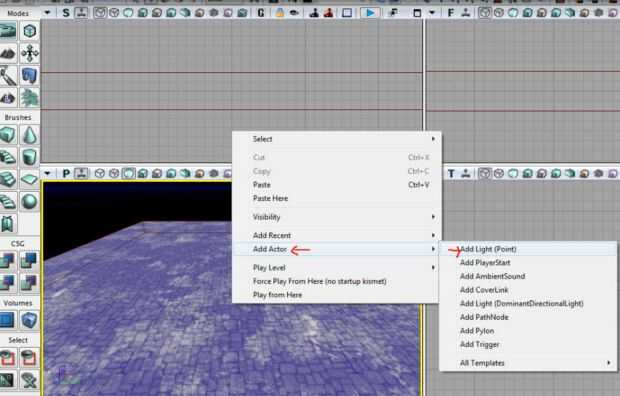 Luz en 3 UDK es bien claro, que puede crear la puesta de sol, luz, ect. o puntos, que pueden ser en cualquier parte y funciona como un foco de luz. Para añadir puntos de luz, haga clic derecho en CSG, texturizadas o no y "Añadir Actor" luego "Agregar luz (punto)" y luego puede arrastrar alrededor de flechas 3 cepilladas que son azul, rojo y verde.