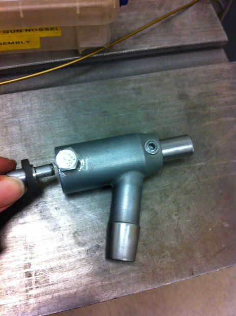 Inserte la boquilla en el cabezal del motor y fíjelo. En este caso, utilizando una llave allen.