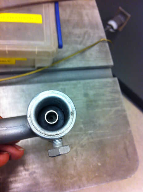A continuación, inserte el jet del aire del sifón el cabezal del motor tal que la Junta es visible.