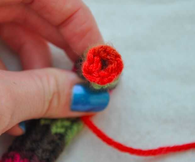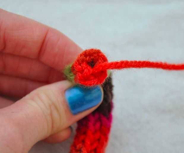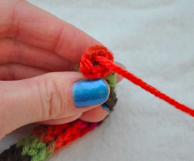 Cuando estaba trabajando en mi bufanda, me di cuenta que no quería que esos extremos débiles en mis cuerdas, así que decidí acabar con mi cable de esta manera.