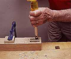 Mortajas profundas son hechos mejor por primer aburrido una serie de superposición de los agujeros. Asegúrese de que la broca es ligeramente más pequeña que el ancho de la cavidad que se quiera hacer. A continuación, utilice un cincel, el lado biselado hacia los residuos para eliminar material. Al llegar a las esquinas, hacer los cortes de la Cruz-grano primero para evitar que se resquebraje de grano largo.