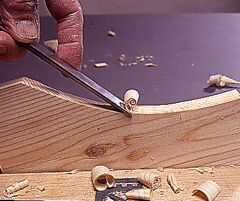 Para recortar a lo largo de una curva cóncava, utilice un cincel que es ligeramente más ancho que el grueso de la población y enfrentar el bisel hacia abajo. Poco a poco, presione la manija hacia abajo como la hoja se avanza a través de la madera. Movimiento y presión constante le asegura una curva simétrica cuando haya terminado.