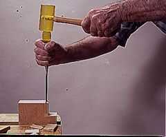 Cuando se requiere una mayor fuerza de corte, envolver una mano alrededor de la manija y utilice un martillo para conducir el cincel. Tenga cuidado al golpear más viejos, madera maneja cinceles, como una manija de madera es mucho más probable que la fractura de una de plástico. También, evite el uso de un martillo metálico llamativo, un martillo de plástico duro hará menos daño a sus cinceles, y si sucedió a la cabeza del cincel, menos daño a los dedos y nudillos.