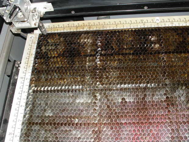Una vez encendido, abra la caja, colocar el material donde nunca va a cortar. Esto es donde las reglas de la imagen útil, esperemos que el cortador del laser está utilizando ha construido en las reglas que le ayudarán a situar las cosas. (Si usted está colocando algo en la esquina superior izquierda, y la cama se eleva a alta, hacer el siguiente paso primero).