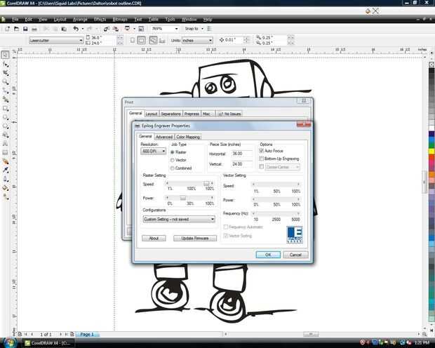 Guardar sus preferencias e imprimir el archivo. Deberá actualizar la pantalla de estado con el cortador láser que ha recibido un nuevo trabajo. Presione el botón "Ir" cuando esté listo, y debe comenzar la impresión.