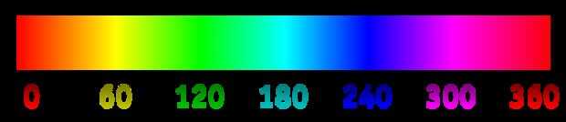 Ver la imagen para ver los distintos colores (fuente: http://en.wikipedia.org/wiki/File:HueScale.svg)