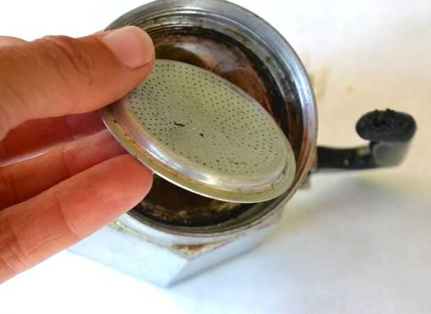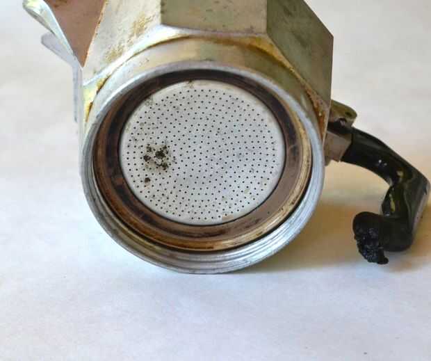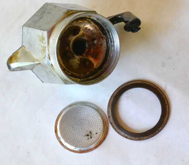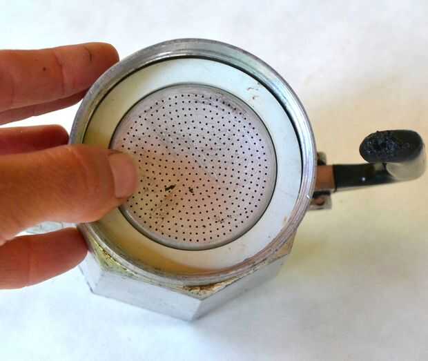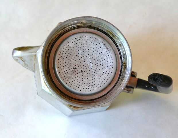 Saque la moka con un cuchillo, darle una limpieza al filtro, ponerlo de nuevo (mire en la dirección correcta en la foto) y devolver el nuevo sello.