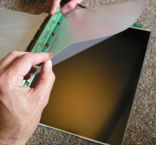 Hay imágenes que muestran las diferentes capas, pero pueden todos ser sacudidos lejos hasta llegar realmente a la parte trasera del vidrio que se ve en la parte delantera. Tenía una lente flexible en la mía, no estoy seguro si es estándar, pero tal vez usted podría experimentar con él.