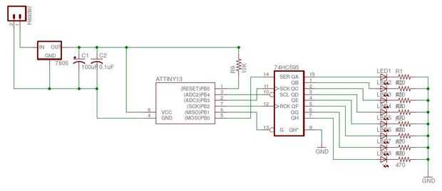 Coloque el ATiny13 y el 74HC595 cerca unos de otros.