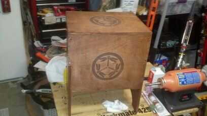 Un cuarto hoja de contrachapado de abedul de .5in me cuesta cerca de $14, el hardware puede costar como mucho o poco que quiera, usted puede saltar el pestillo y sólo uñas trocitos de cuero de desecho en las bisagras de, uso chatarra cuerda para las asas, tienes alrededor de la mancha y esta caja sólo podría costarle para madera... comprar bisagras y aplausos fácilmente el doble del costo , pero parece mucho más agradable.