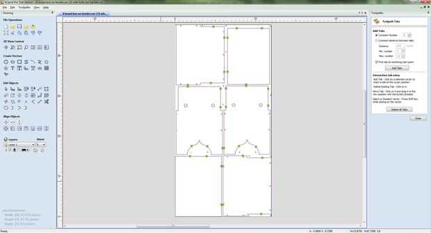 Recoger el resto de la geometría, que debe ser los contornos de las cajas. Este completo profundidad de corte. 5"(1/2"). Asegúrese de añadir un montón de pestañas, incluyendo las lengüetas de ambos lados del material donde el router corta toda la madera entre las dos piezas. Ver imagen de the2nd a continuación un ejemplo de cómo he añadido las pestañas. Usted notará que he añadido demasiados fichas comparados con lo que se recomienda. Esto es porque yo seguí teniendo problema con piezas de cambio como la consiguieran cortar, debido a lo poco residuos de madera que tengo en el diseño. Usé las tablas 3d por defecto que v-talle recomendado