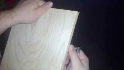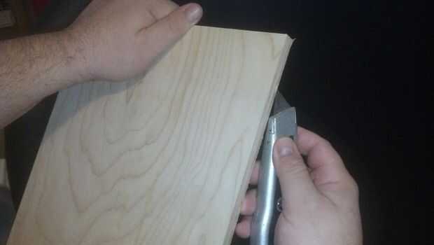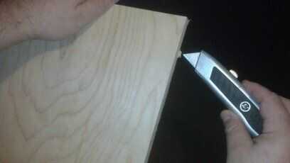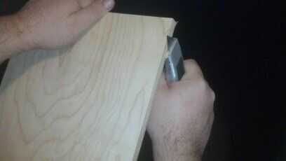 Coge un trozo de madera con lengüetas en él, use una mano para sostenerla contra su vientre con la parte plana de la lengüeta hacia abajo (fotos 1 y 2 me muestran hacia una ficha). Entonces sostenga la cuchilla plana contra el borde de la madera y con la cuchilla de corte para arriba y en ángulo y corte las pestañas (este ángulo hace que la chapa Haz pulsado en la madera por lo que ha dañado menos, ver foto 3). A menudo toma unos pases que se eliminaron por completo y el borde liso;