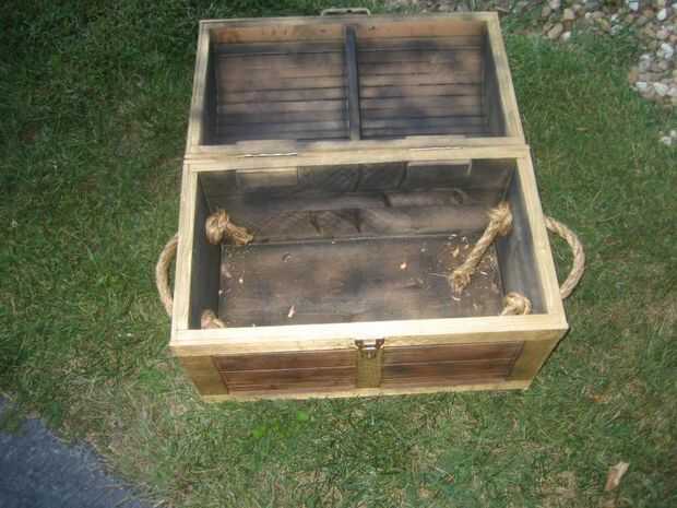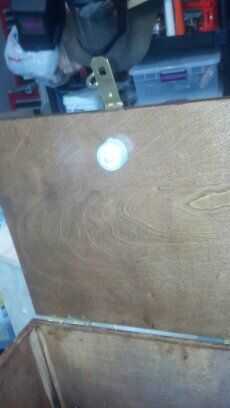 Foto 5 y 6 son de alguien más haciendo lo mismo como ahora mismo no tengo ninguna cadena. sólo asegúrese de usar un tornillo más corto que su madera es gruesa... Si atornillar el de la cadena dentro de la tapa un poco (digamos 1") Esto evitará que la cadena ser atrapado como a menudo al cerrar la caja.
