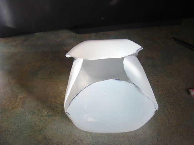 Ahora doblar hacia abajo los bordes corta, más redondos, hacia el centro de la jarra. El último para doblar hacia abajo es el alto borde redondeado. Es como la tapa.