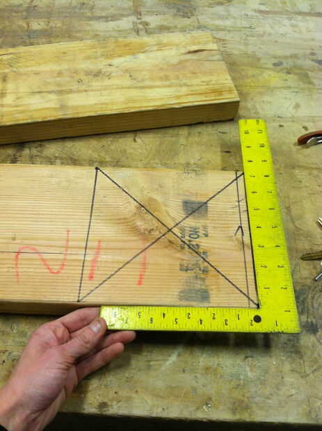 Medir y cortar cuadrados; hacer una esquina a esquina 'X' para encontrar el centro en ambos lados.
