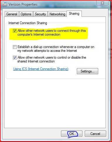 Cómo utilizar una tarjeta de internet de verizon como un módem inalámbrico (3 / 5 paso)