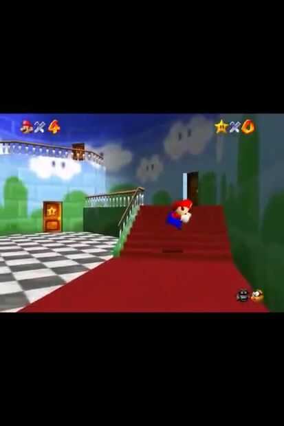 Hacer una cuenta nueva. Entonces, ves princesa Peach escribir una carta a Mario e introducciones al juego. Ir dentro del castillo y cabeza a la escalera con la puerta que tiene un "3" estrellas y cara la pared. Luego, realizar un salto de longitud pero después estás en el aire, punto de la palanca de control detrás de usted y presione lo más rápidamente posible. Se necesita mucha práctica, pero Mario debería estar haciendo un montón de atrás saltos de largo muy rápidos y ahora debería ser al revés mucho saltar justo a la derecha de un pilar corto con dos monedas en él. Si sigues hasta el salto hacia atrás de largo él debe terminar en el 1er curso de Bowser. Completar el curso y derrotar a Bowser e ir al sótano.