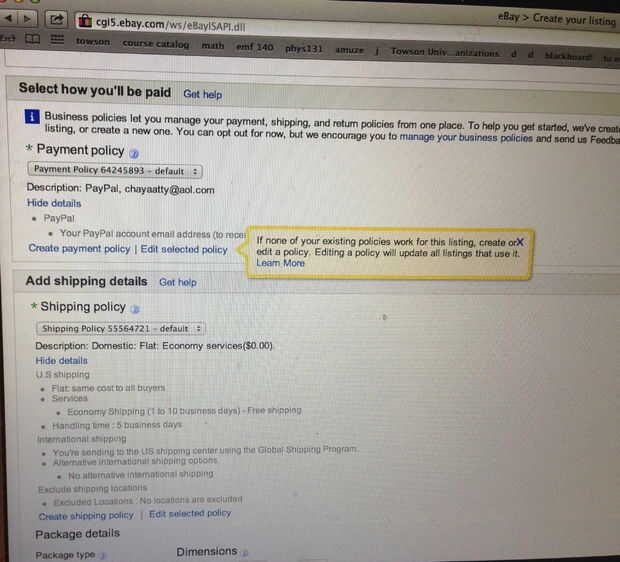 Nota: Para administrar sus políticas de negocio en cualquier momento, vaya a la pestaña cuenta de Mi eBay y haga clic en las políticas del negocio.