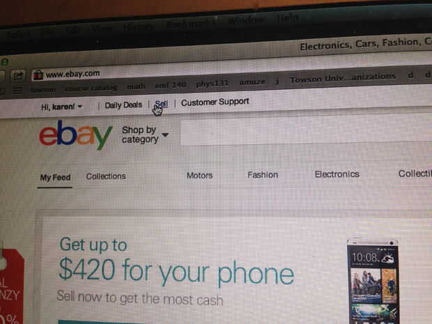 3. una vez en el sitio web de eBay haga clic en la ficha de venta para empezar a vender tu artículo. La ficha de venta puede encontrarse en la esquina izquierda de la página web, que se muestra en la foto de arriba.