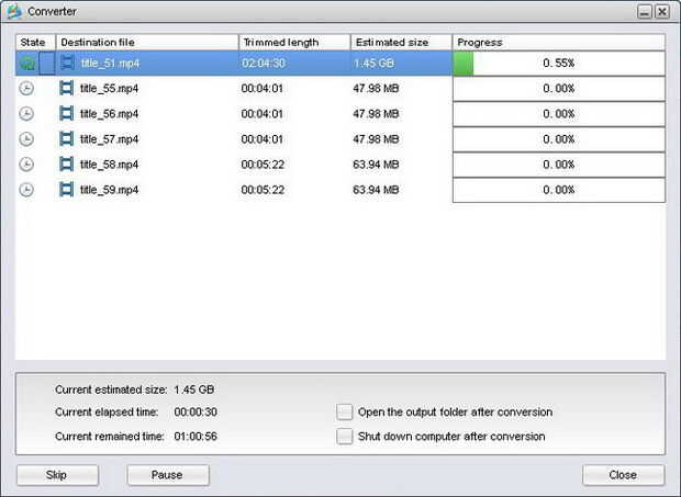 Sobre medidas hechos, ahora se puede "convertir" para completar el proceso de ripeo de DVD a teléfonos. La barra de progreso te mostraría exactamente cuánto se ha hecho, y cuánto tiempo duraría. Además, se proporcionan con humanizado después de hacer ajustes: abrir la carpeta de salida después de la conversión o apague el ordenador después de la conversión. Esto ayudaría a ahorrar su tiempo y energía para casos de emergencia.