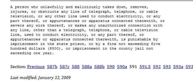 Una búsqueda rápida en Google muestra que PC 243(E)(1) batería interna que no requiere y lesión y que PC 591 implica dañar algunas utilidades de tipo eléctrico.