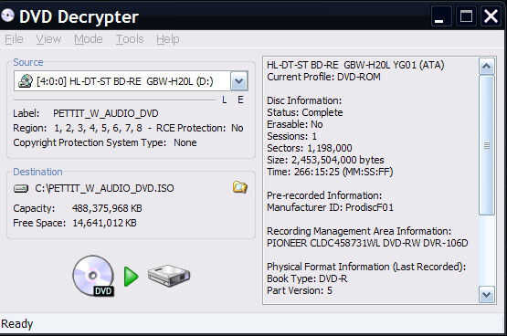 Por defecto el DVD Decrypter copia imágenes en el directorio raíz del disco duro. Si lo desea, puede seleccionar otro directorio.