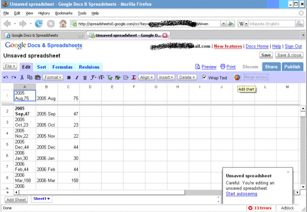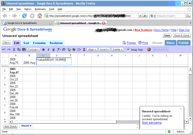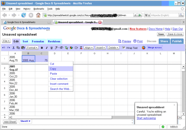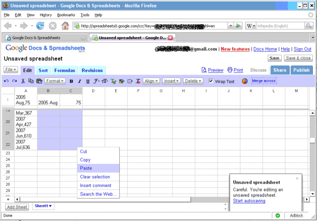 Para pegar los datos que necesita para seleccionar la celda A1 y presione Ctrl+v. ¡ Nota! No puedes en el portapapeles, haga clic en o haga clic derecho y seleccione pegar o incluso utilizar la edición | Menú de pasta del Firefox. Debe utilizar ctrl-v para pegar datos externos.