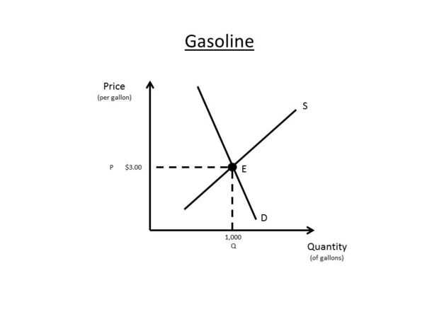 Nota: antes de impuestos, la cantidad de equilibrio para el gas es de 1.000 galones y el precio de equilibrio de gas es de 3 dólares el galón (los consumidores pagan 3 dólares el galón de gas y los productores reciben $3 ingresos ventas por galón de gasolina).