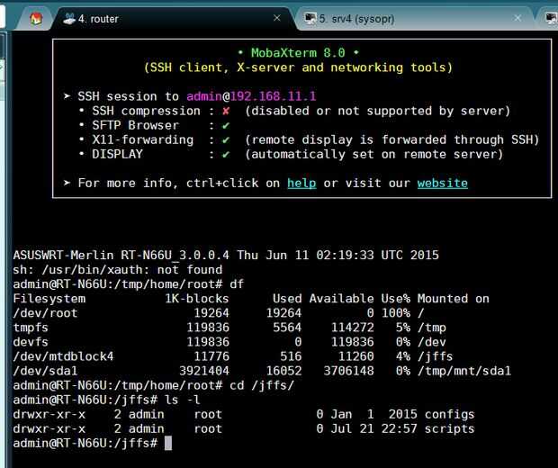 - Verificar que /jffs existe y contiene los directorios "configuraciones" y "scripts" (ver captura).