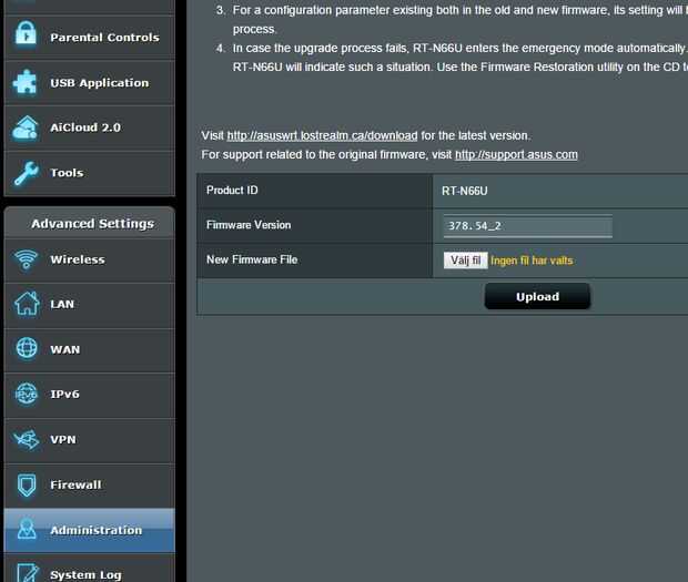Descargo de responsabilidad! No cargar el custom firmware en tu router a menos que sepa lo que está haciendo o por lo menos aceptar que existe un leve riesgo de que te equivocas tu router hasta un punto de no retorno (tapiado). He cargado un montón de custom firmware en routers y nunca tuve problemas pero sé pueden ocurrir problemas. Sin embargo, Merlin de ASUS, el riesgo es bajo puesto que se basa en stock firmware.