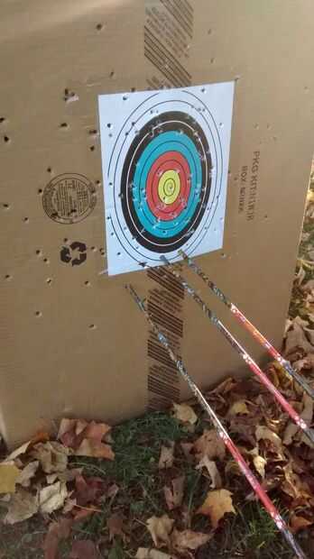 Ir a buscar en donde las flechas golpear la blanco, usted debería ver un pequeño grupo de ellos y tal vez una flecha de préstamo en otra parte dependiendo de lo bueno que es su técnica. En esta foto puede decir que mis flechas son tiro demasiado bajas.