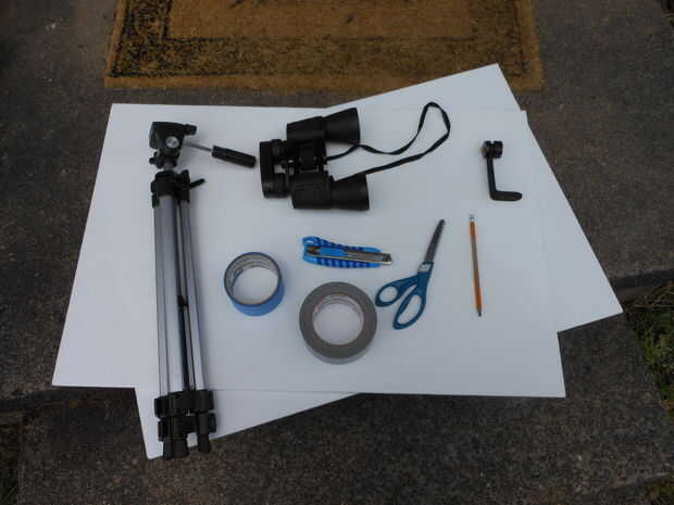 - Trípode binoculares (o cadena, cuerda, más cinta adhesiva, etc.)