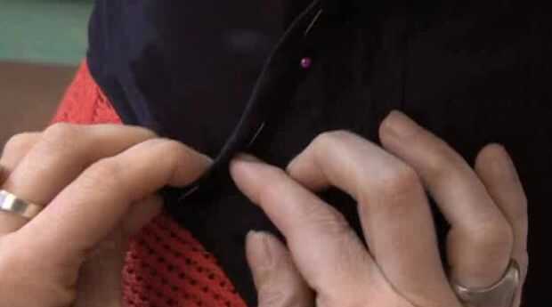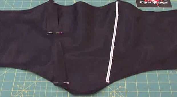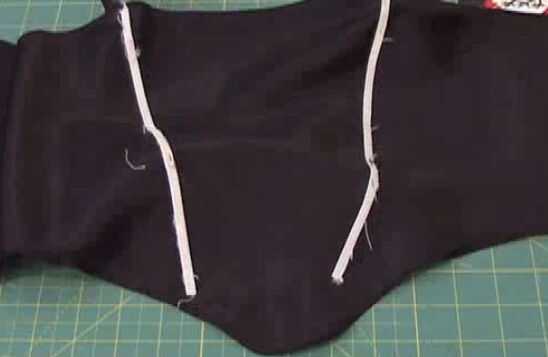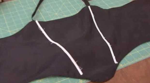 15. agarra el deshuesado pelado en la ropa vieja (teníamos dos), y la clavija en el interior de la prenda a partir de la curva de la izquierda en la parte superior de la forma de su corsé y apuntando hacia el centro de la parte inferior. Lo mismo para los otros deshuesado en el lado derecho. Soporta el corsé a su cuerpo, asegurándose de que el deshuesado se adapta a los contornos de su pecho. Una vez que la forma es perfecta, cosa que el deshuesado sobre la prenda.