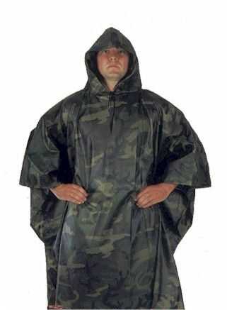 Plástico y recubierto nylon se utilizan para hacer muchos ponchos de lluvia parkas y polainas.