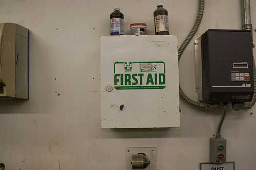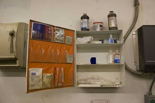 Encontrar el pobre suministro de primeros auxilios que ha sido saqueada en los años por otros estudiantes.