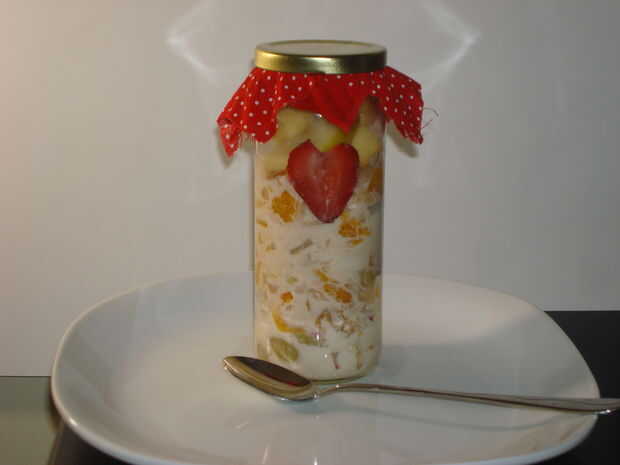 Llena el tarro de ensalada de frutas hasta donde quería el corazón.