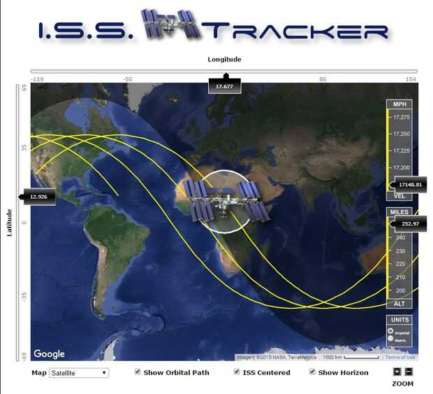 Y esta página web del ISS en el mapa con el símbolo de la ISS se mueve.