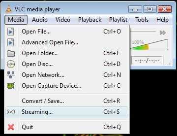 Seleccione el menú de medios de comunicación y haga clic en "Streaming..."