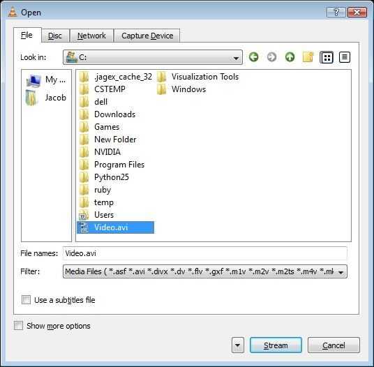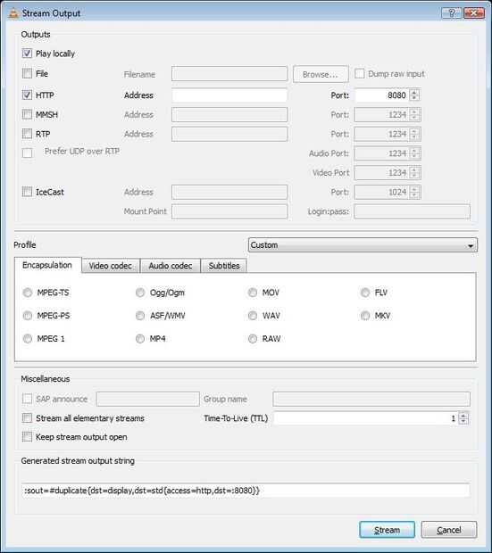 En el cuadro de diálogo abrir, seleccione el archivo que desee y haga clic en "Stream". El cuadro de diálogo de salida se abrirá automáticamente.