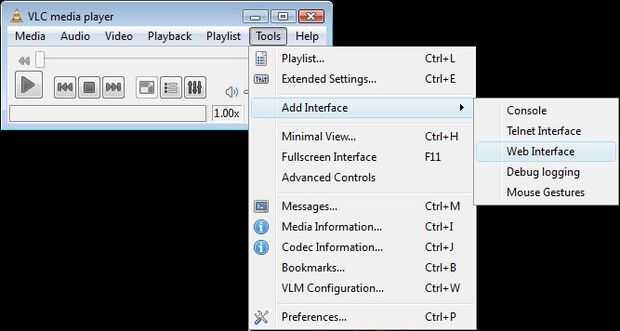 Si la corriente no se carga, usted necesitará agregar una interfaz web para el jugador. Para ello, vaya al menú herramientas y seleccione Añadir interfaz -> interfaz Web. Seleccione la entrada de la IP de nuevo y debería funcionar como un encanto.