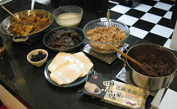 Compré un paquete congelado de 10 por $0.99, pero usted puede hacer su propia - son básicamente una pasta dulce de semillas de tierra envuelto en una masa simple de harina de arroz. Coloque las bolas de arroz congelado en agua hirviendo, revolviendo sobre para que no se peguen al fondo de la cacerola. Cuando flotan en la superficie, debe ser cocinada y tibia a través de todo el camino. Retirar con una espumadera y servir caliente.