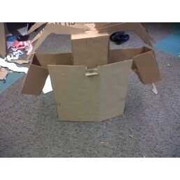 Terminado el increíble traje de cartón del pingüino de penacho amarillo, ¡ Felicidades!
