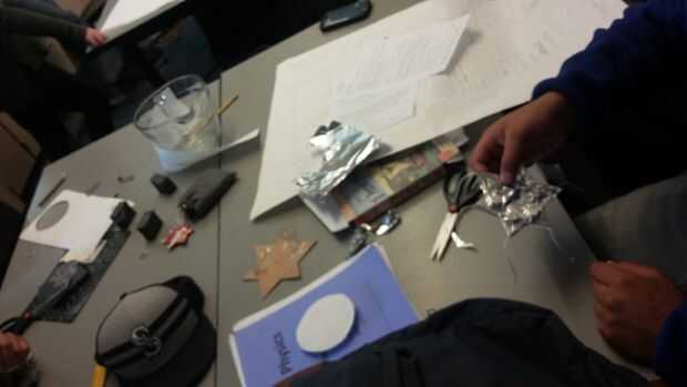 Usando aproximadamente un pie de alambre de cobre fino, hacer una bobina envolviendo el alambre alrededor de un lápiz. La bobina se extienden en un círculo que quepa uniformemente en el fondo del recipiente. Colocar cuerdas a cada punto de la estrella en el paso anterior y luego conecte los otros extremos de las cuerdas a la bobina. Hacemos esto para que la estrella no voltear ni volar porque los imanes podrían ser demasiado de gran alcance.