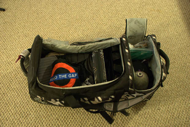 Después de retira el regulador lo pongo en el pequeño compartimiento situado entre la mascarilla y el muro exterior de la bolsa. Trato de mantener cerca de la cima porque ayudará a los agentes de la TSA encontrar rápidamente y verifique que esté vacía. Tanques se pueden traer en su equipaje, pero necesitan tener el regulador removido. Si intenta afeitar un par de libras de su bolsa marcada luego ponérselo en su transporte es una opción. Puede encontrar más información de la TSA aquí: TSA viajando con cilindros de Gas de la compresa
