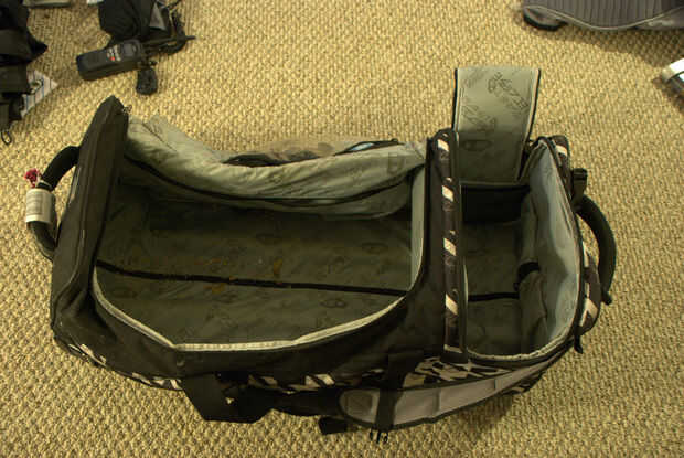 Planet Eclipse . Tiene dos compartimentos separados con un separador de ambientes. El compartimiento grande es donde irá la mayor parte del engranaje del juego. El compartimiento más pequeño utilizar para artículos personales como ropa de repuesto y mi neceser.