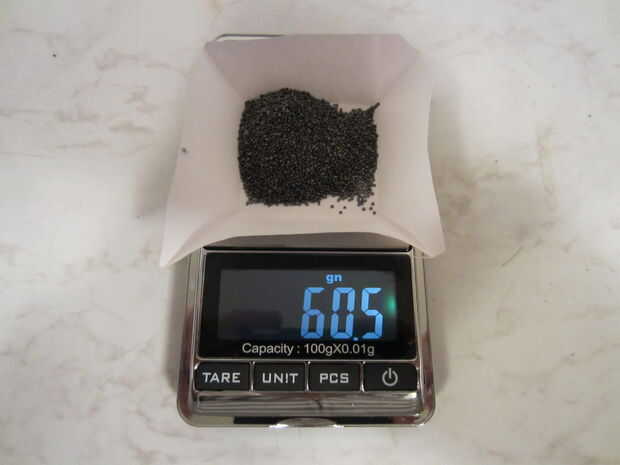 60 granos de polvo. Cuidadosamente peso la carga adecuada en una escala digital, o si recomienda el uso de un normal Lee-cargador carga, simplemente use la pala amarilla incluida en el kit.