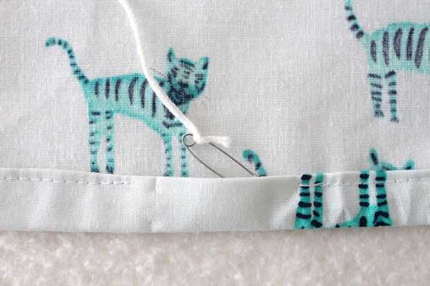Me dije que volver a utilizar el cable de la cubierta, que no va tan bien. Se convierte hacia fuera no era lo suficientemente largo! Terminé reemplazándolo con seda del bordado. Realmente desea que la cuerda/cadena ser sobre 12 + pulgadas más largos que la longitud de la arista exterior de la Junta.