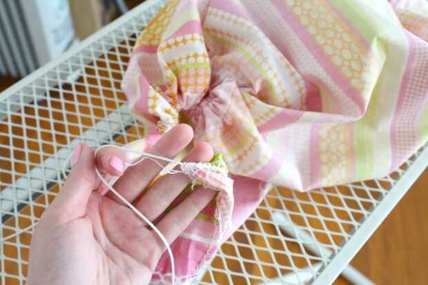 Quite la cuerda o elástico (puede que necesite cortar lejos) y coloque en la tabla de planchar. Use la plancha para hacer la cubierta tan plano como sea posible.